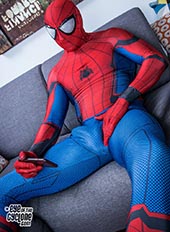 The wall crawling superhero had an eventful past few months. The guys at T.H.R.O.B had kited him out with a new spider suit after the old spandex version was torn to shreds in battle. This new suit had spandex nano technology which allowed the superhero to move around as though he was completely naked, the nano technology fitting his suit skin tight to every muscle and stretching to every movement.